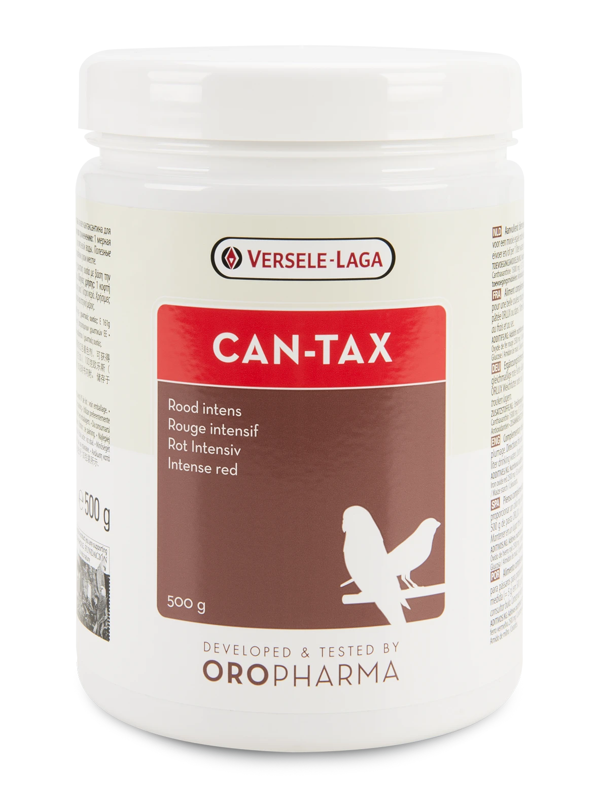 Oropharma Can-Tax ist ein roter Farbstoff auf Basis von Canthaxanthin. Dieses Ergänzungsmittel färbt rote Kanarienvögel, intensiviert bei anderen Vögeln die rote Farbe und sorgt für eine schöne und gleichmäßige Rotfärbung. Wird Can-Tax unter das Futter g